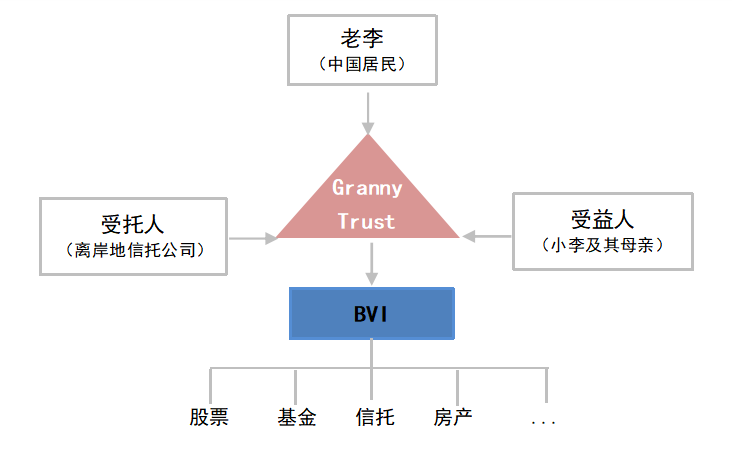 2)由于老李持有的资产种类比较多,为了便于集中统一管理,在家族信托项下搭建一个BVI来持有境内的各种资产。