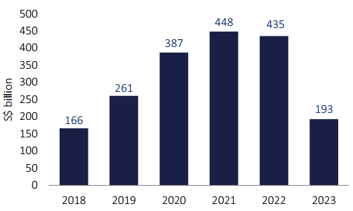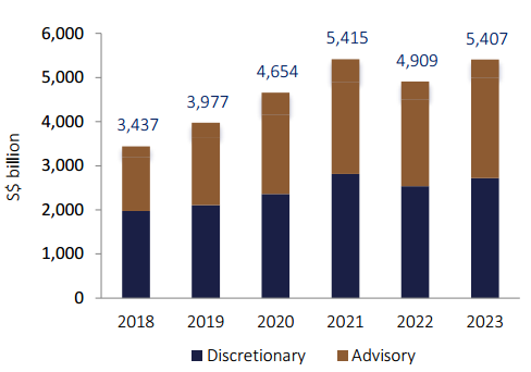 图1:新加坡管理资产规模变化趋势(2018-2023)