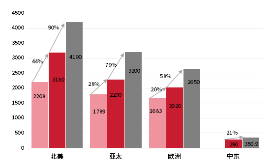 图:分区域全球家族办公数量及增速(2019年vs.2024年vs.2030年)