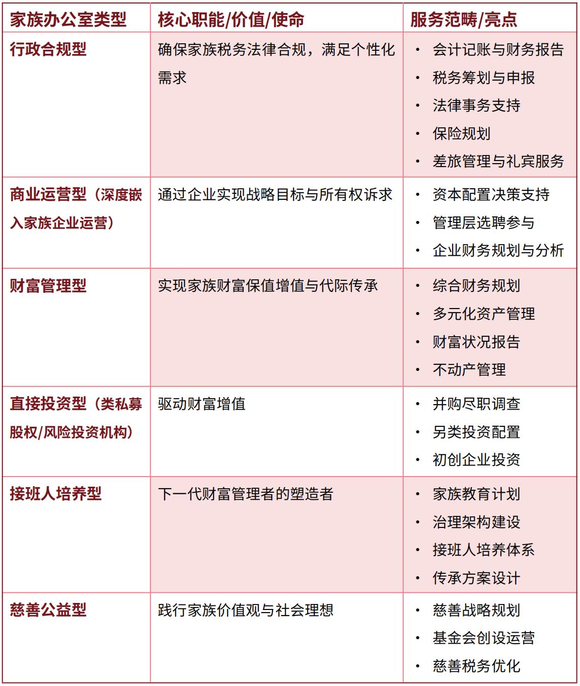 表:家族办公室类型全解析