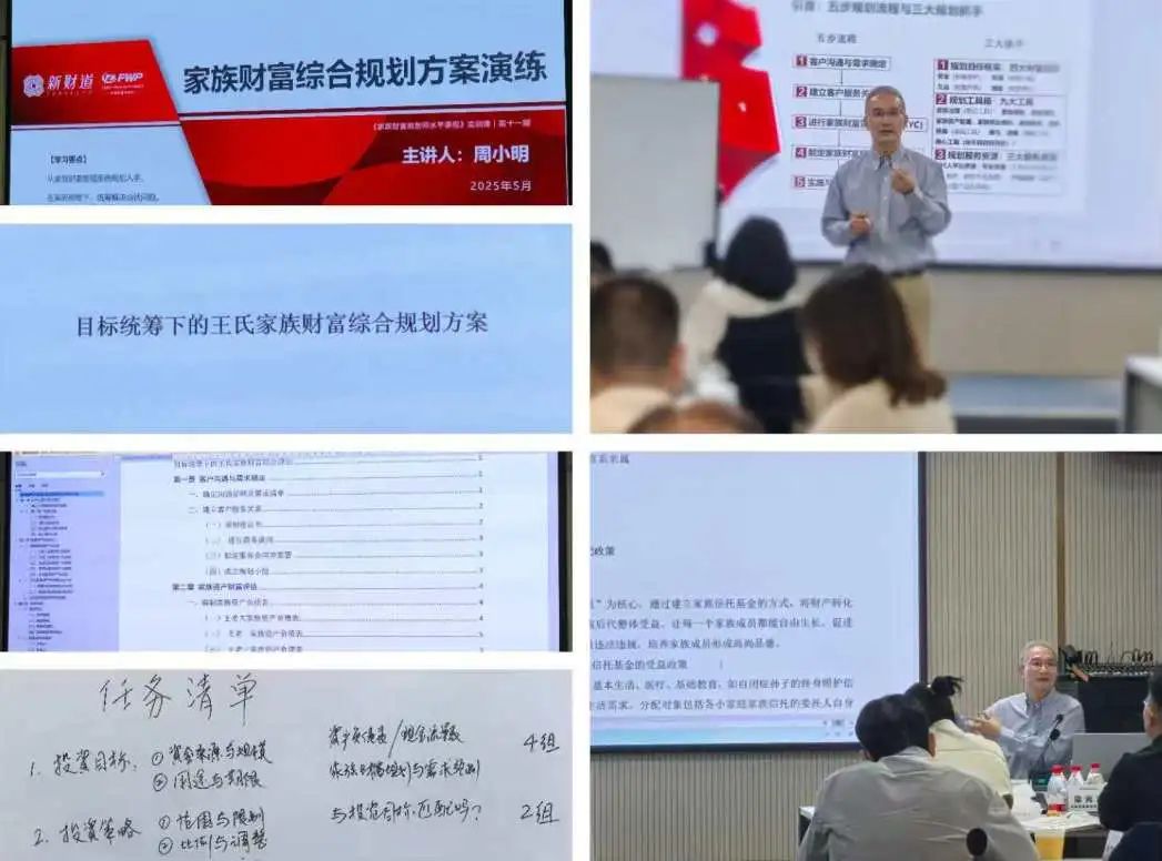 在六天的课程中,同学们围绕家族客户财富规划综合案例,聚焦于服务交付,进行了系统性的实训演练。课程从家族财富管理的顶层设计入手,在指导专家的带领下,对家族财富评估和家族目标与政策进行了全面梳理,综合运用家族保险配置、境内外家族信托、企业员工利益信托、家族慈善、境内外家族资产配置、家族教育及家族治理等家族财富管理工具,展开了基于目标统筹下的家族财富综合规划全案流程及实操要点的学习与演练,帮助学员掌握家族财富管理系统规划知识体系,构建本土家族办公室服务的交付体系。