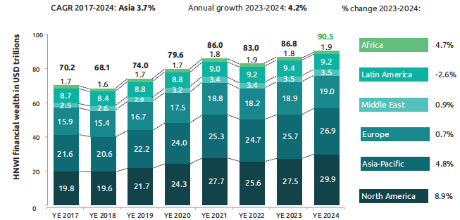全球财富市场平稳增长,但不同区域分化显著