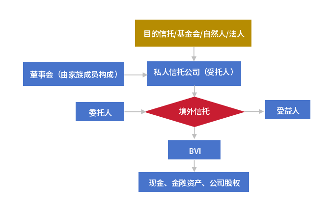 私人信托公司是由家族设立的专属信托公司,常见于离岸信托的规划结构中,主要目的是担任家族某个或数个特定信托的受托人,用于管理家族信托资产。