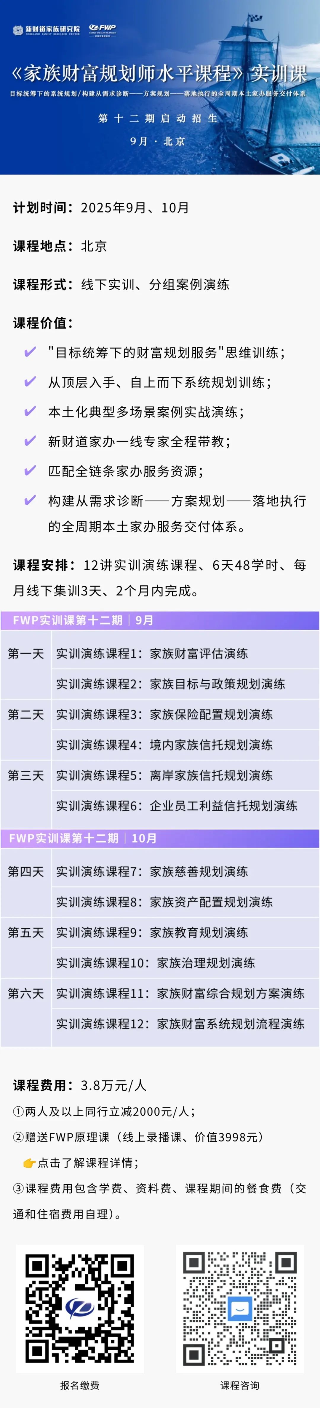 家族办公室与财富管理业务研究会副秘书长孙美妍为FWP课程第七期班的优秀学员,并取得《家族财富规划师水平证书》。她结合实践应用分享了三个方面的学习收获。第一,实现了认知边界的突破。家族财富管理是一项系统工程,需摒弃 “头痛医头、脚痛医脚” 的碎片化服务思维,以系统规划为前提,方能为客户提供更专业、更值得信赖的服务。第二,构建了系统性的专业技能体系。FWP课程具有强大的实践指导价值,在实务中,通过运用“目标统筹下的系统规划法”,围绕“安全、和谐、增值、久远”四大财富目标服务客户,成为项目推进的有力抓手,并在学习期间成功将这一方法论应用于实际项目、促成落地。第三,拓展了资源整合的深度与宽度。通过FWP课程的平台,得以链接到周博士等行业权威专家及资深专业人士,在服务具有财富传承需求的客户时,从家族财富管理战略规划的层面,联动新财道共同介入项目,实现了资源的互补互助。