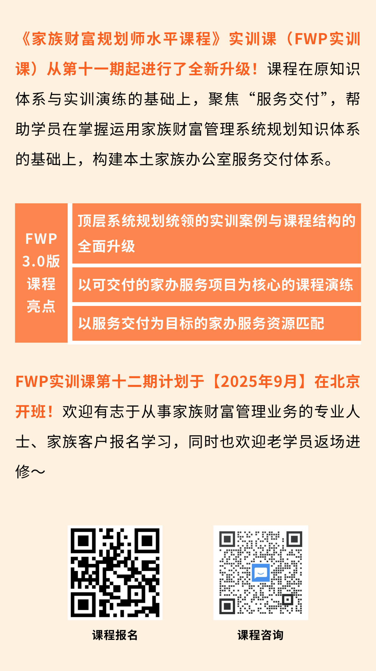 家族财富规划师同学会(FWP同学会)旨在围绕家族财富管理专业领域为家族财富规划师们搭建建立友谊、资源共享、赋能互助的平台,使每位同学成为彼此赋能的贡献者。