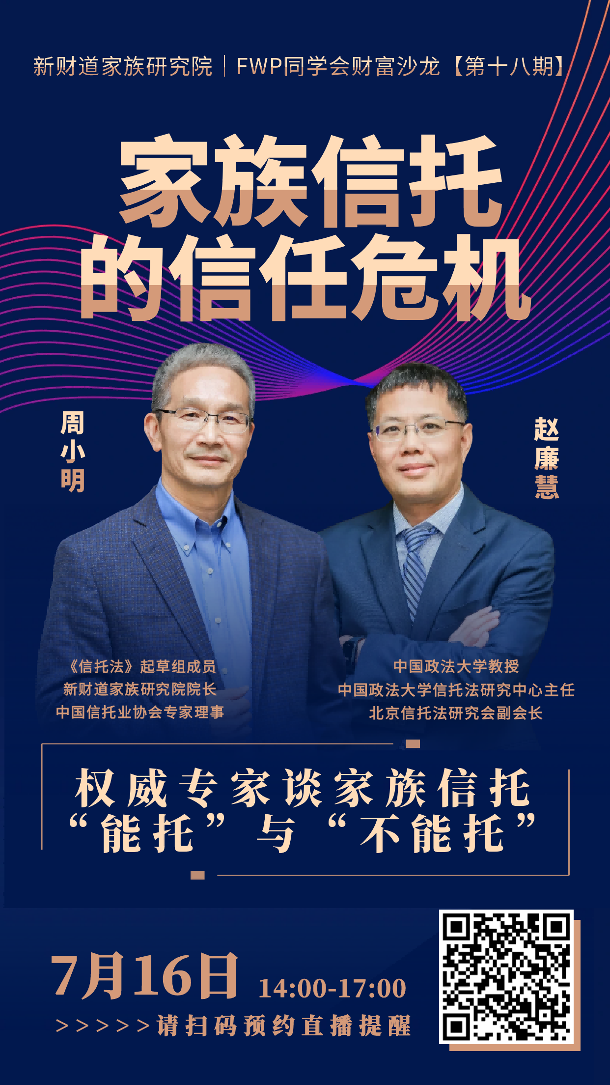 有关家族信托被强制执行案的更多疑问,及设立合法、有效家族信托的核心要素,请关注新财道家族研究院与家族财富规划师同学会于2025年7月16日联合举办的主题为“家族信托的信任危机——权威专家谈家族信托的‘能托’与‘不能托’”的财富沙龙。