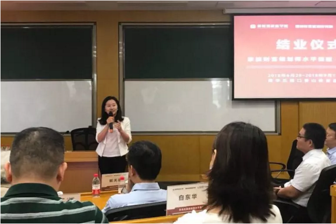 学员代表鼎辉富华投资的白东华总监说,我是新财道家族学院的老学员,去年参加了他们举办的家族信托和家族保险的专题班,使我视野大开,并确立了自己做家族办公室的职业定位。今年的这个《家族财富规划师水平课程》,使我深刻地理解了家族财富管理的四大目标及它们之间的递进层次,家族财富之树的常青靠的是家族的社会资本、文化资本和人力资本,以及七大工具的组合运用,使我能够更加自信地与客户进行沟通。虽然今天培训课程结束了,但是我的事业才刚刚起步,我真诚地希望新财道能够一如既往的日益进取、不断向上,也带领我们这些刚刚进入业界的人一路向前。
