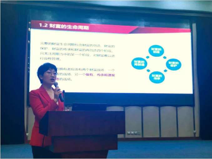 新财道北京家族办公室负责人孙慕菲为兰州银行企业家客户开展主题为“开启您的财富管理之门”的演讲,从企业家有哪些财富烦恼介绍开始,列举了财富人士常见的财富烦恼,然后详细介绍了解决这些烦恼的财富管理工具——家族信托,从家族信托原理到家族信托的现实案例,生动的讲解了家族信托的功能和应用场景,帮助企业家客户认识了解家族信托。