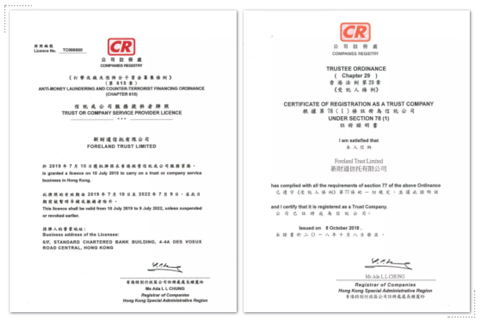 新财道财富管理股份有限公司(以下简称“新财道财富”)香港信托公司——新财道信托有限公司(以下简称“新财道信托”)继2018年10月8日取得“受托人”资格后,于2019年7月10日正式获批“信托或公司服务提供者牌照”。