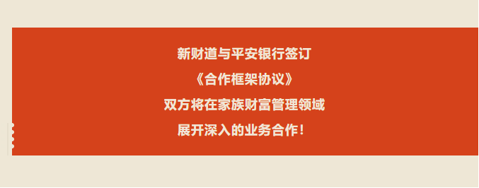 7月,新财道与平安银行签订《合作框架协议》,双方将在家族财富管理领域展开深入的业务合作。