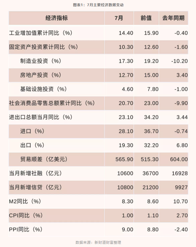……(未完,更多内容请点击链接查看:7月经济数据点评|经济增长动能减弱,生产、消费、投资增速均回落)