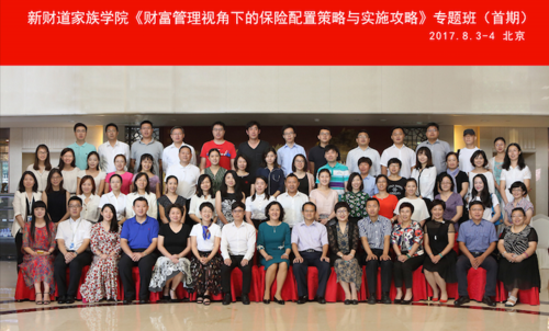 2017年8月3-4日,新财道家族学院家族财富管理七大工具系列之“家族保险”板块课程——《财富管理视角下的保险配置策略与实施攻略》首期班在北京开班。这是继家族信托之后,新财道家族学院自主研发上线的第二大板块的课程。本期课程共有来自信托公司、商业银行私人银行部、保险公司、律师事务所、第三方财富管理机构等18家金融机构和部分高净值人士,共计70余名学员报名参加了本次课程的学习。