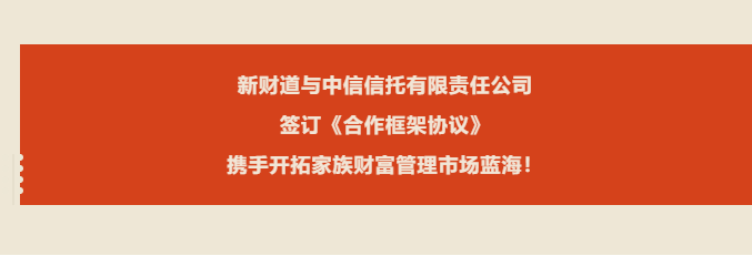 近日,新财道财富管理股份有限公司(以下简称“新财道”)与中信信托有限责任公司(以下简称“中信信托”)共同签署家族财富管理业务合作框架协议,双方将在家族财富管理领域进行全面合作。