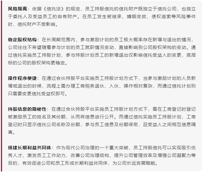 委托人可以通过员工持股信托架构的搭建,实现以下功能: