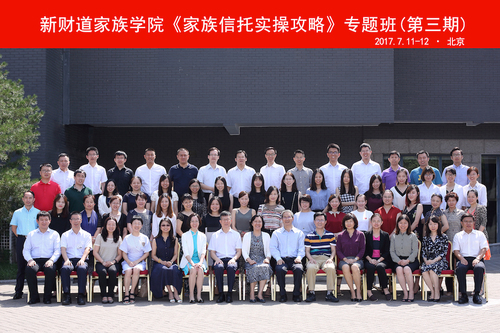2017年7月11-12日,新财道家族学院家族财富管理七大工具系列专题课程之一——《家族信托实操攻略》在北京开班。这是继3月北京首期班,4月南京第二期班之后的第三期“家族信托”模块的课程。来自信托公司、商业银行私人银行部、保险公司、律师事务所、第三方财富管理机构等25家金融机构和部分高净值人士,共60余名学员报名参加了本次课程的学习。