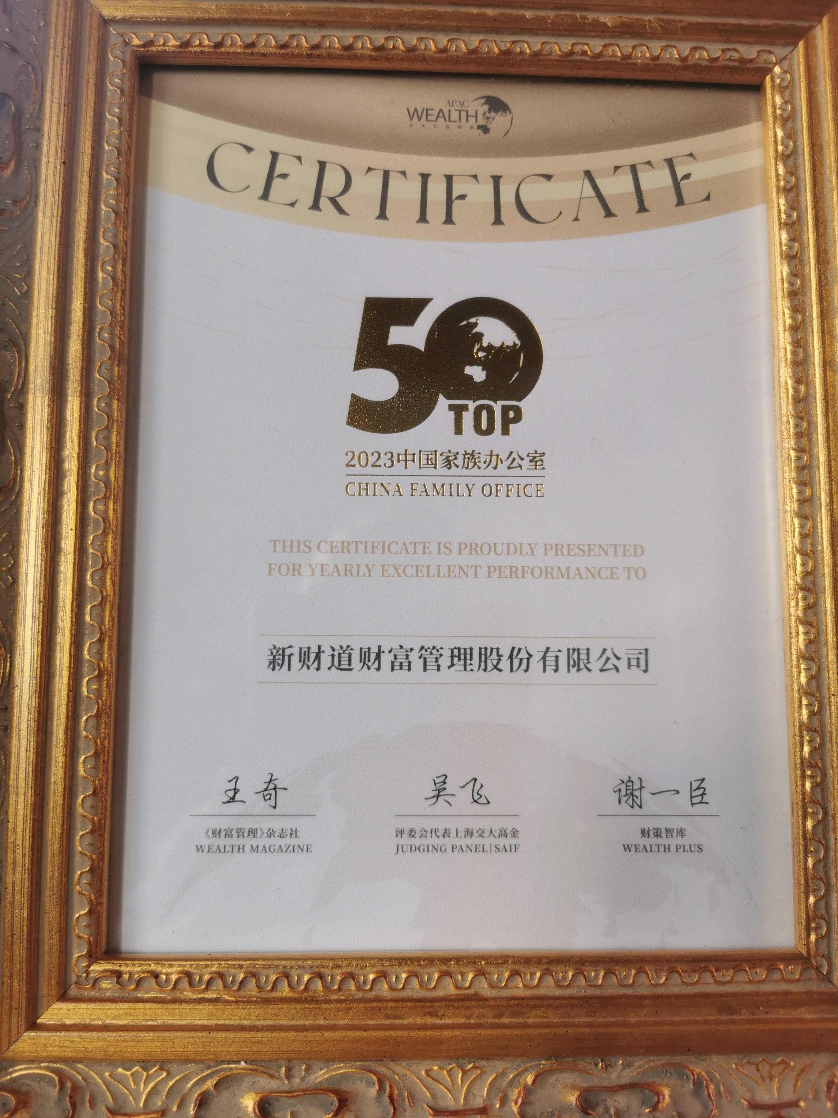 亚太财富论坛的国际私人及家族财富管理行业评选奖项已成为亚太地区定位卓越财富管理机构的风向标。这是新财道连续4年凭借优质的一站式家办服务、良好的客户体验、高度的客户信任以及领先的专业能力,在该评选活动中突出重围,获得奖项。