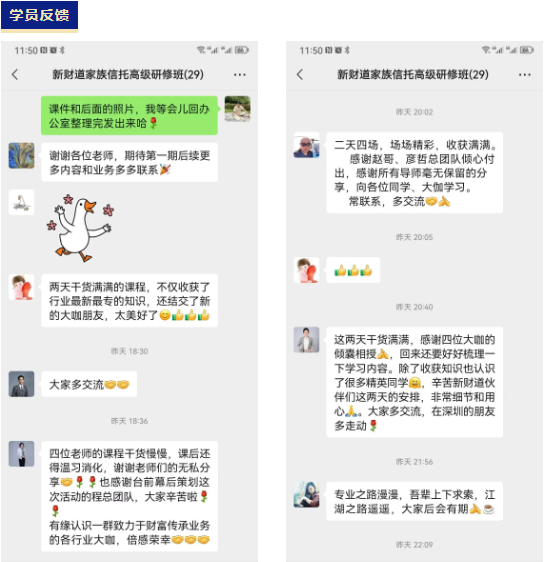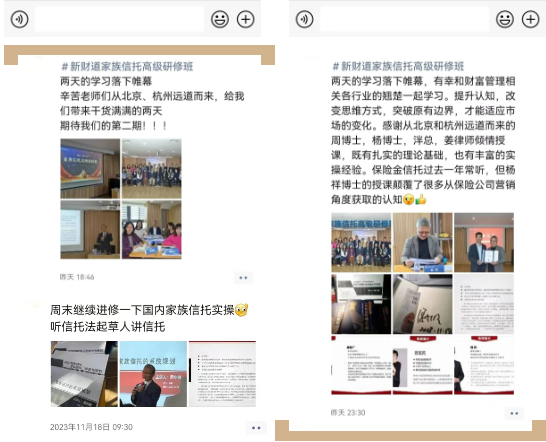 两天四门课的学习,同学们完成了《家族信托架构设计、场景与规划》、《股权/股票信托架构设计、场景与规划》、《离岸信托架构设计、场景与规划》、《保险金信托架构设计、场景与规划》四大课程案例的实训演练。